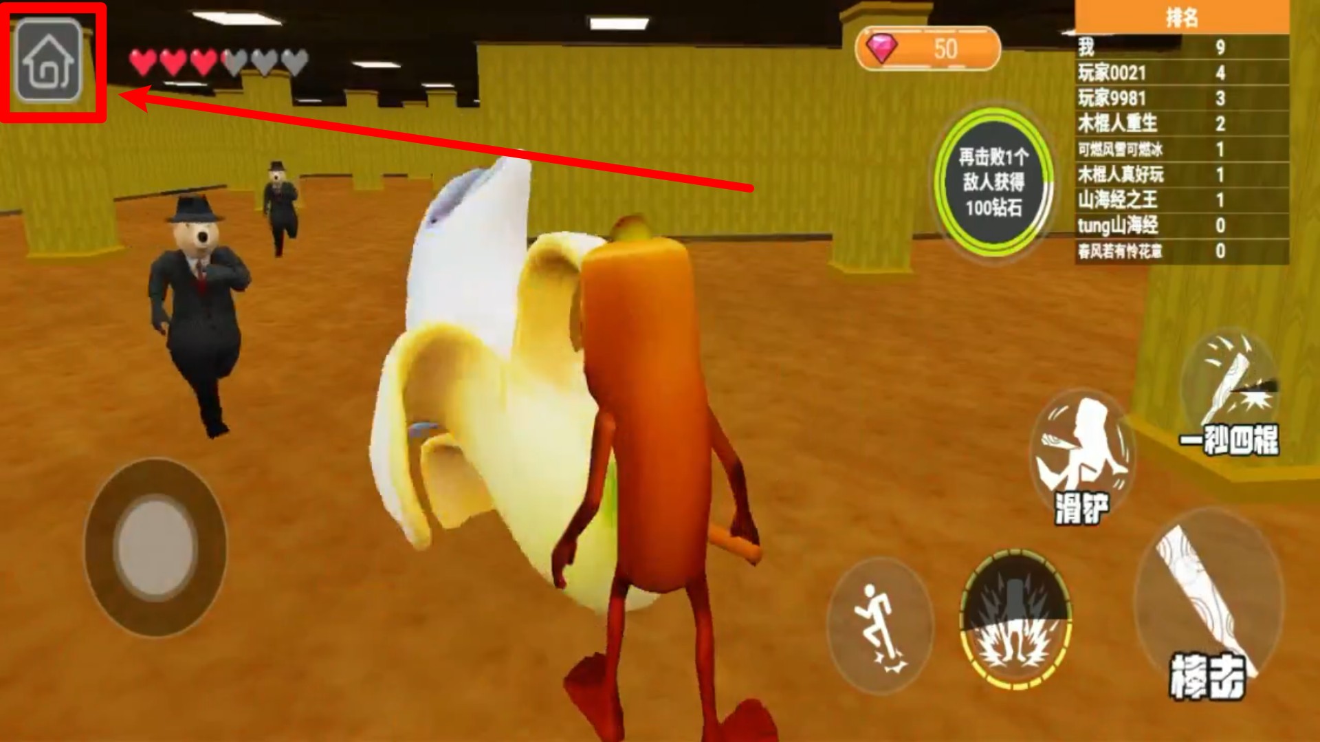 3.返回主界:点击左上角的房子图标即可快速返回主界面,方便玩家在任何情况下结束当前挑战并重新调整。