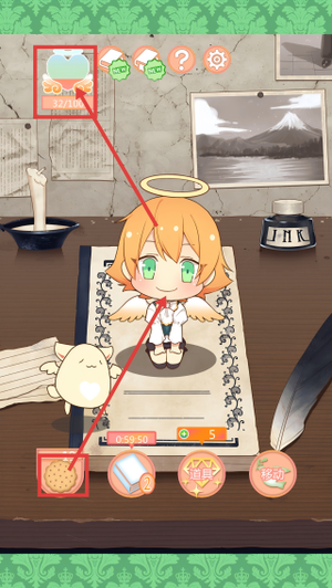 3、在主界面持续点击饼干图标获取资源,提升经验条至32/100等阶段,推动角色成长与故事进展。