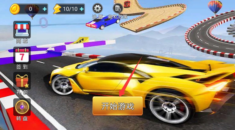 1、启动游戏后点击"开始游戏"按钮进入主界面,选择喜欢的赛车开启极限驾驶挑战。