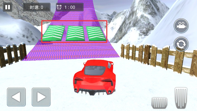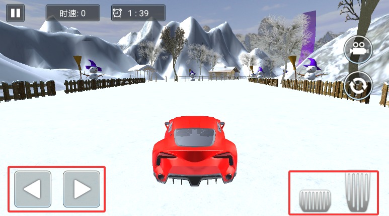 3、使用左侧按钮控制赛车左右转向,右侧按键分别控制车辆加速前进与倒车。