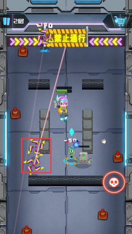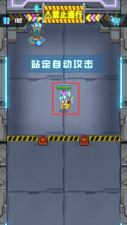 2、通过滑动屏幕控制角色移动位置,站立在安全区域时会自动攻击范围内敌人。