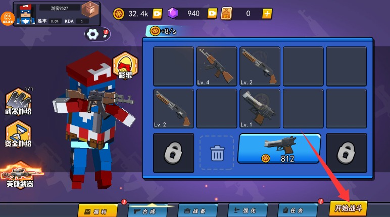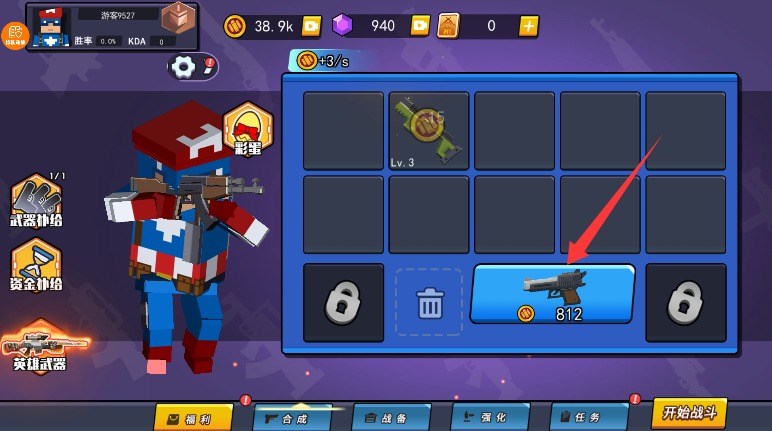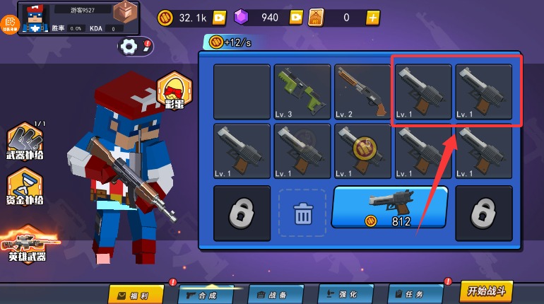 2、将两件相同型号的武器拖动合并操作,可以合成威力更强大的高级别新型武器。
