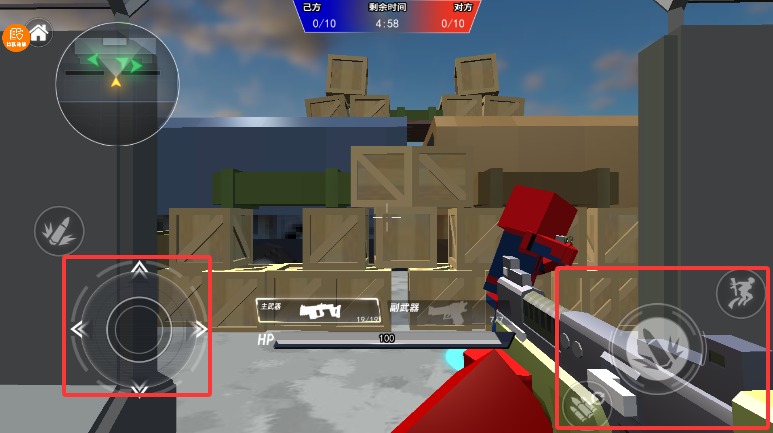 4、通过左侧摇杆控制移动走位方向,右侧按键负责射击与跳跃,全歼敌人即可通关。