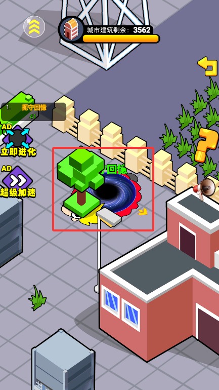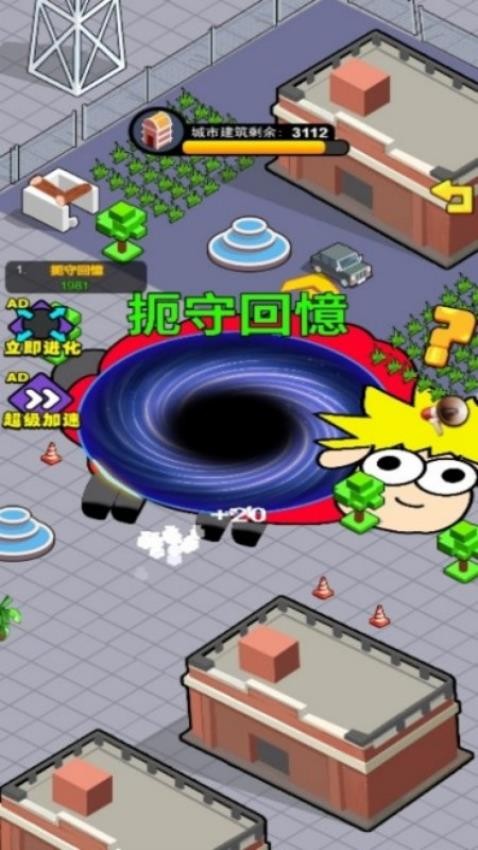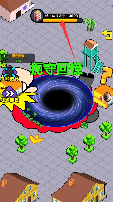 3、引导黑洞吞噬城市中的各类建筑物,每吞噬一个建筑都会增大自身体积。