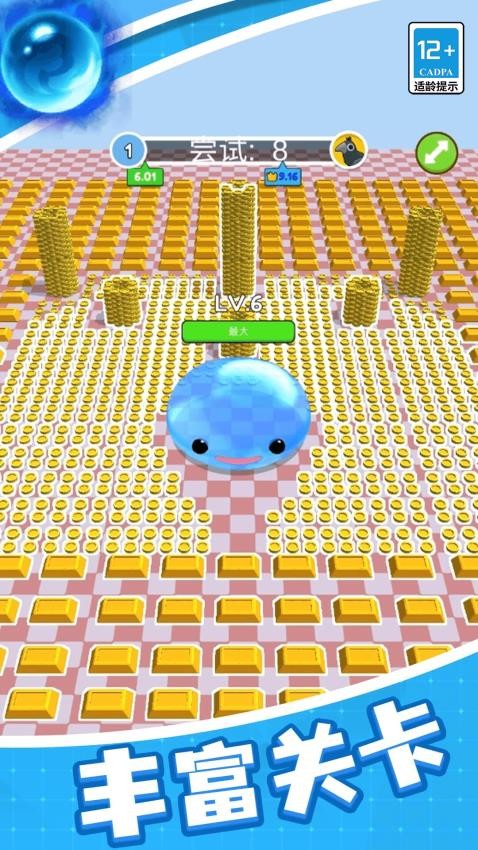 3、直观的成长视觉反馈:史莱姆的体型会随着吞噬进度实时增长,体型越大可吞噬的物品越多,成长过程清晰可见。