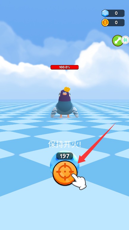4、在战斗界面持续点击屏幕保持火力输出,消耗对手生命值即可获得最终胜利。