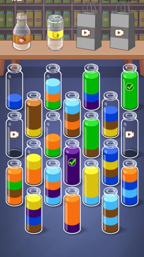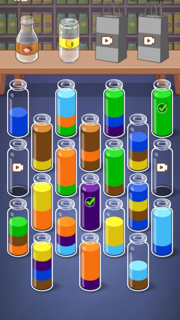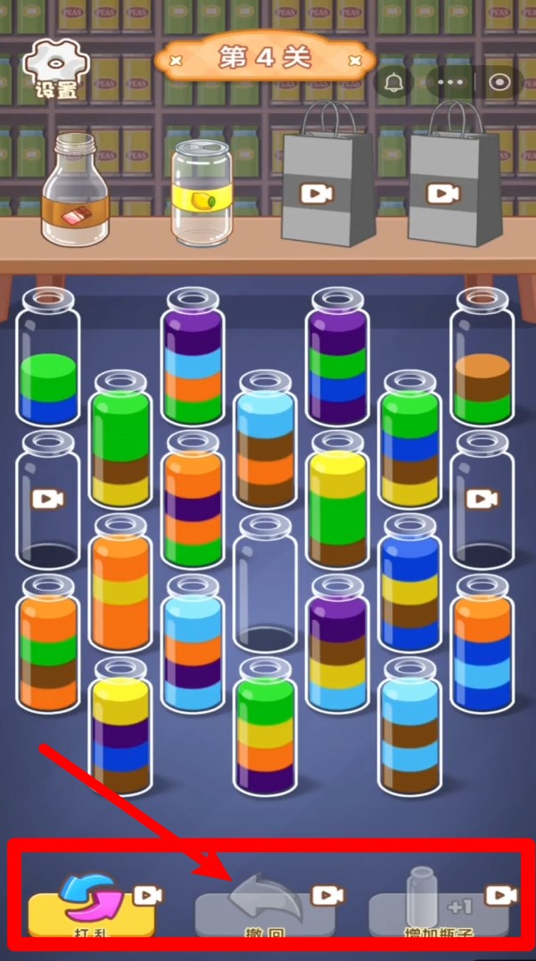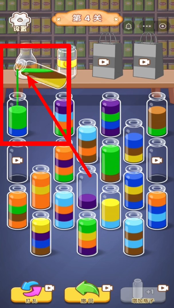 3.灵活使用功能:底部的打乱、撤回和增加瓶子按钮,让玩家在遇到难关时也能轻松应对,保证解谜过程顺畅且更有趣。