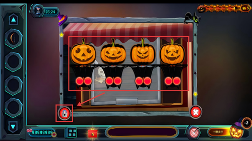2、遇到南瓜形状机关时,按照提示将对应图案排列正确,点击锁形按钮解锁机关。