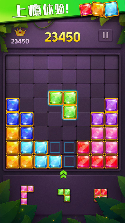 1、玩法特别简单,很容易上手,主要就是用手指拖放精美的宝石方块到棋盘中,以消除方块为主要目标。