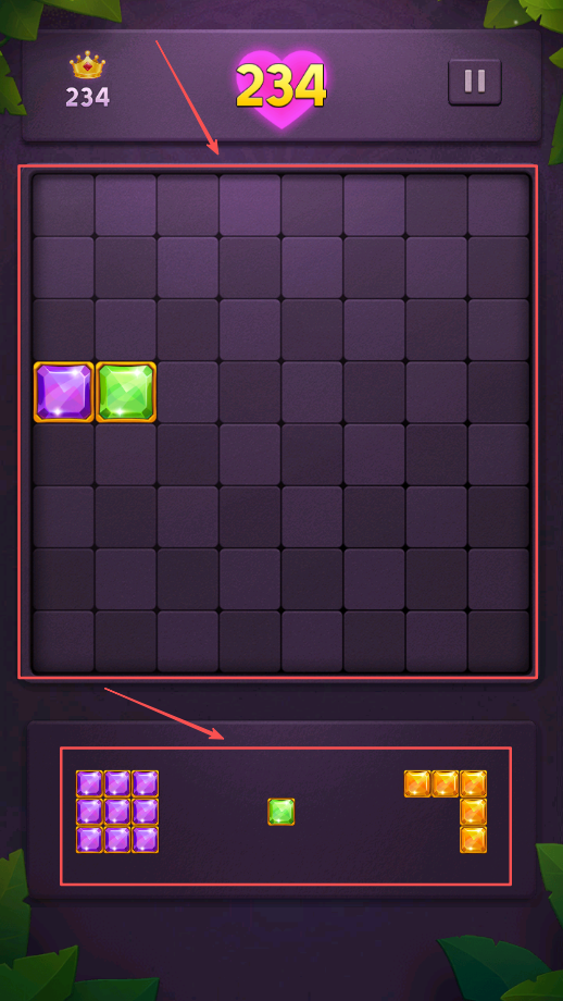 2、在方格盘中摆放方块时,只要有横向或者竖向的格子被方块完全填满,这一整行或列的方块就会自动消除。