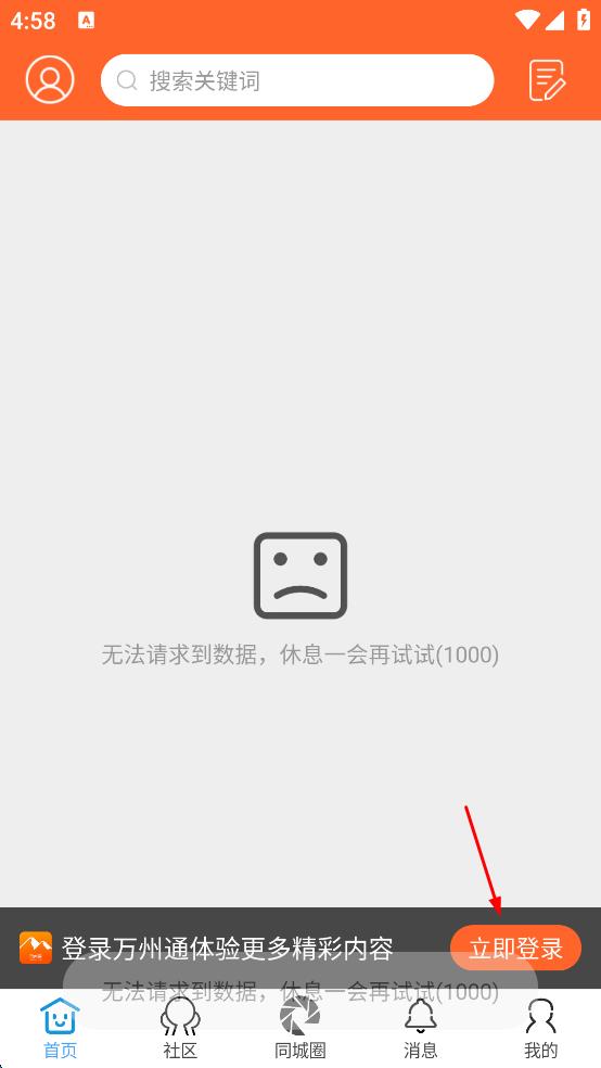 2、在万州通主界面,点击“立即登录”,进入登录选择页面。