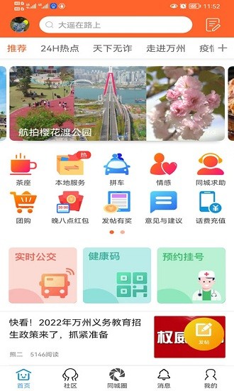 万州通最新版是非常实用的同城生活服务软件,用户下载app之后就可以在线搜索本地最新资讯,丰富的内容板块可以满足大家的日常需求,从衣食住行到吃喝玩乐一一囊括,带给大家最好的体验,还有超多同城圈子等待大家的加入,赶紧下载万州通app看看吧。