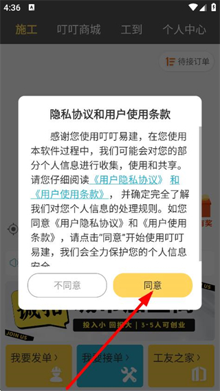 1、在隐私协议和用户使用条款弹窗中,点击同意,进入软件。