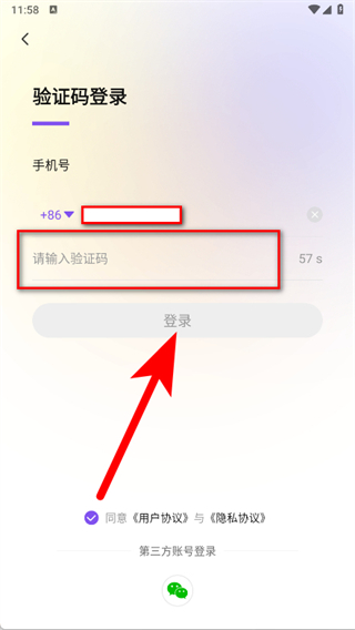 4、输入收到的验证码,勾选后点击登录,完成注册。