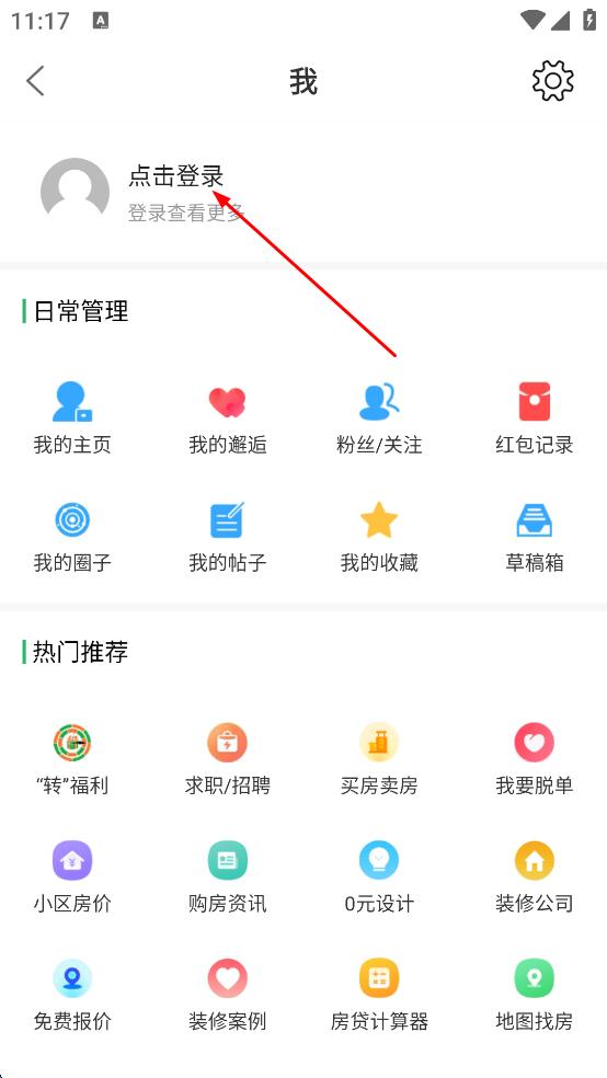 2、在“我”的页面中,点击“点击登录”按钮,进入登录页面。