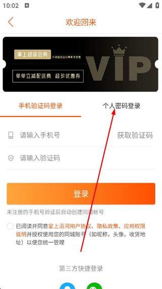 3、进入登录页面后,找到并点击个人密码登录选项。