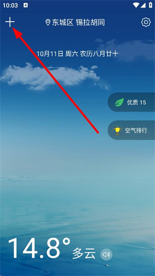 1、在软件主界面,点击左上角的+号,进入城市定位页面。