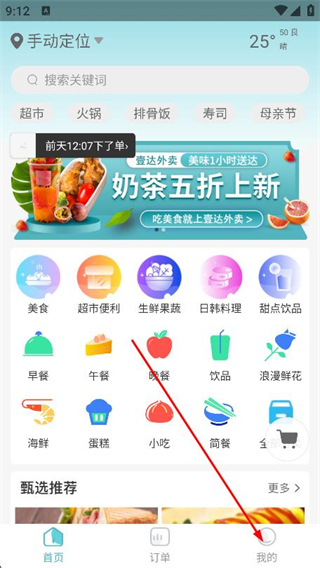 1、打开壹达外卖app,点击底部导航栏最右侧我的。
