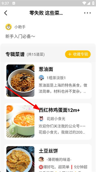 2、在新手菜谱页面,选择要查看的菜谱,进入菜谱详情页。