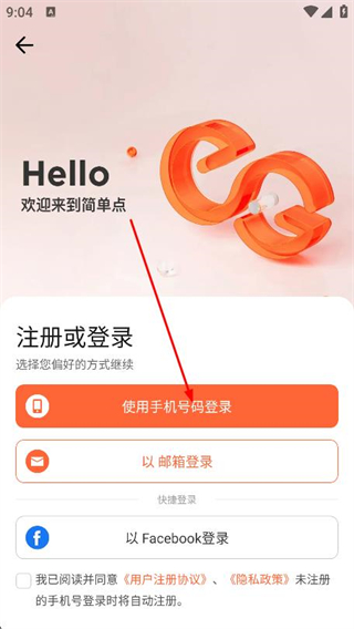 3、进入注册或登录页面,点击使用手机号码登录按钮。