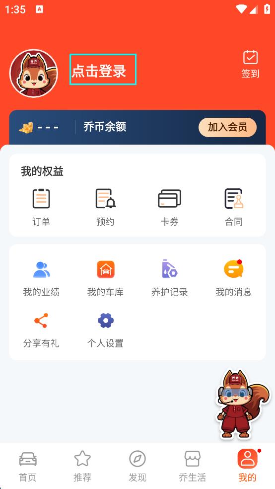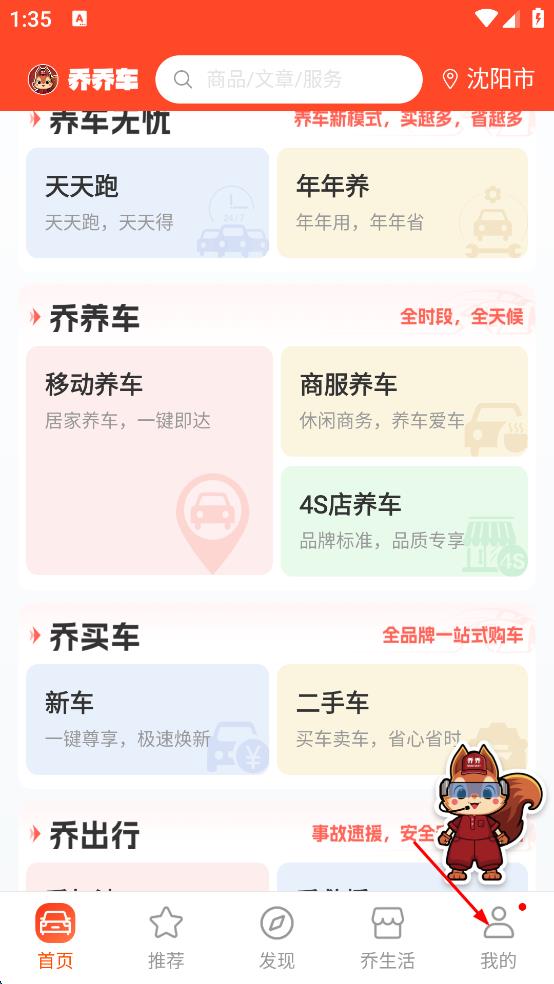 1、打开乔乔车APP,进入首页后,点击页面右下角的“我的”按钮。