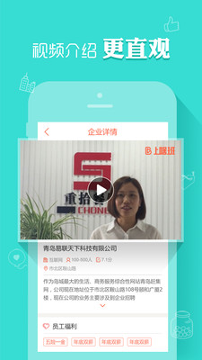 上啥班招聘找工作APP是一款专注于服务业的高效视频招聘平台,致力于为求职者和企业提供更便捷、更直观的招聘体验。通过创新的视频互动模式,打破传统文字简历的局限,让求职者能够全方位展示个人能力,同时帮助企业更生动地呈现工作环境和岗位需求。无论是寻找心仪工作还是招聘合适人才,上啥班都能提供精准匹配和高效沟通渠道,让招聘求职过程变得更简单、更透明。