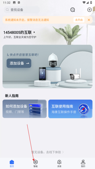 1、打开海康互联APP,点击底部导航栏中的我的选项,进入个人中心页面。