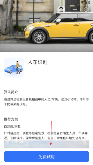 2、在个人中心页面中,选择需要免费试用的智能算法,点击进入该算法的详情页面。