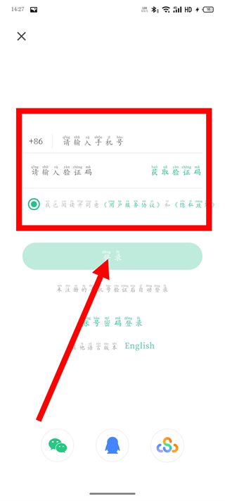4、在登录页面,输入手机号、验证码,勾选后,点击登录,完成注册。