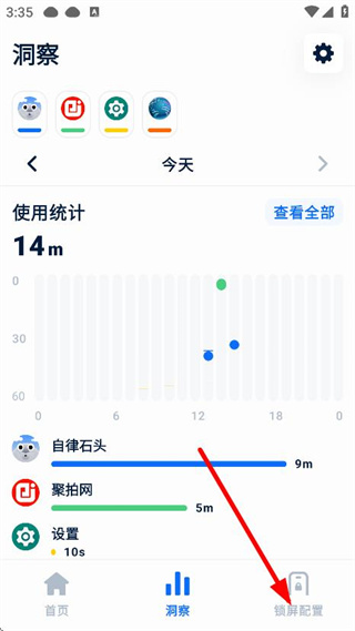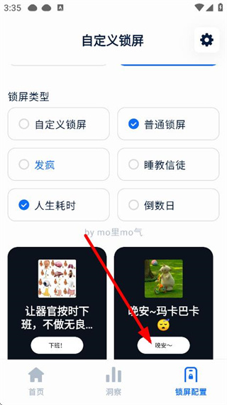 1、在洞察页面,点击底部的锁屏配置,进入自定义锁屏页面。