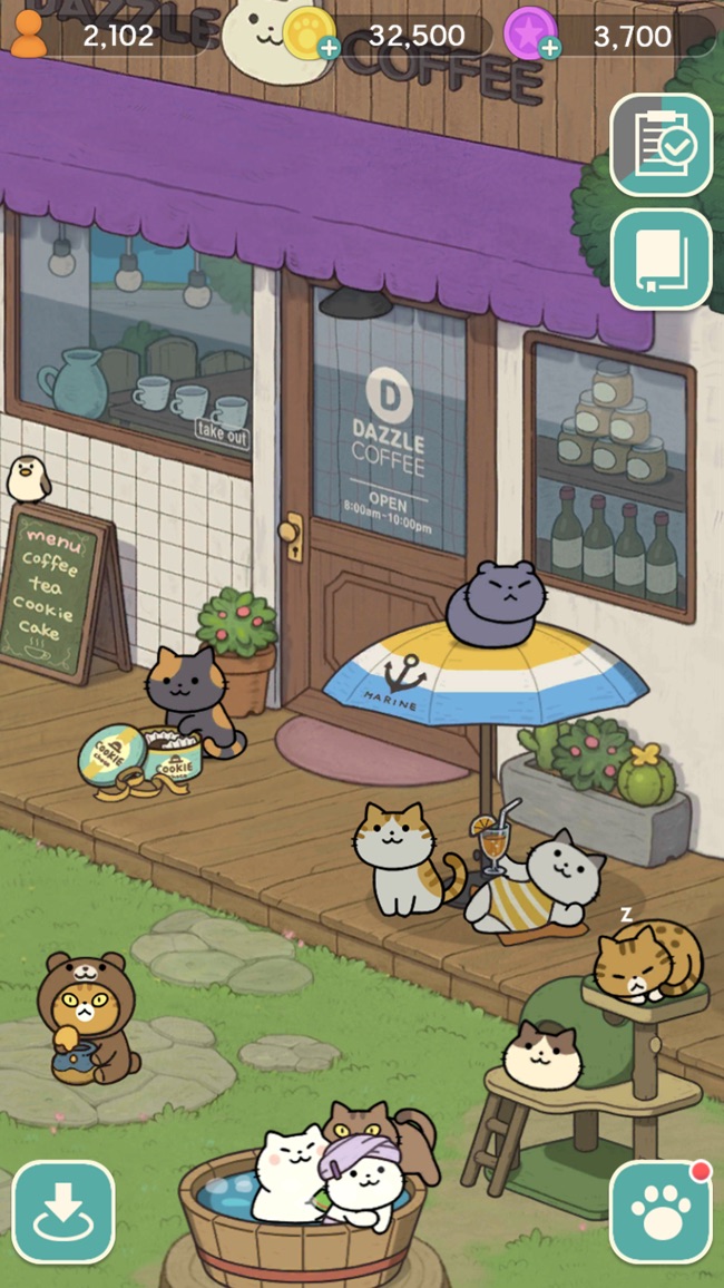 2、游戏中猫咪拥有多种萌态造型和丰富服装选择,它们在不同时间段会呈现不同状态,这些细节设计大大增强了游戏的可玩性。
