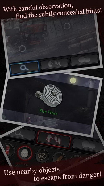 开场隐藏彩蛋:在查看门缝时快速左右滑动屏幕三次,可触发特殊视角看到凶手背影。物品组合存在多种可能性:斧头+衣服可制作消音装置,若选择铲子柄+衣服则能制成简易火把。精神值管理是序章关键,持续注视尸体会导致屏幕出现血丝特效,此时需要移开视线深呼吸(摇晃设备模拟)。门锁破解存在时间限制,超时未逃脱会触发BAD ENDING彩蛋。建议新手优先收集床头柜的镇定剂,可在后续追逐战中延长反应时间窗口。