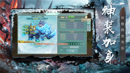 2、炫酷套装系统让你轻松打造个性角色,所有装备都可以通过战斗获得,更有免费元宝相送,良心福利让你拿到手软!