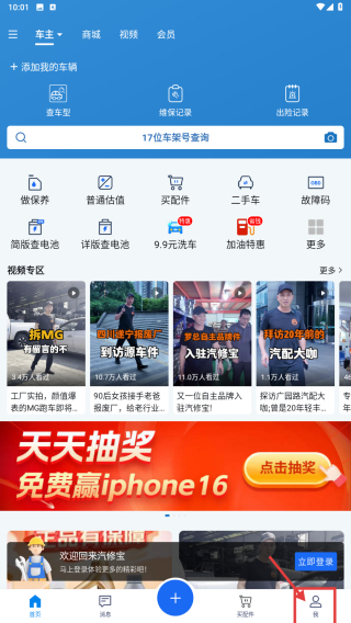 1、打开汽车服务类应用,点击底部我的选项,进入个人中心页面。