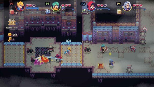 2、整个游戏以经典的16位街机风格呈现,Rogue-lite玩法为你提供了无限的随机冒险体验。每次游戏都会生成不同的敌人组合、宝藏分布和特殊事件。