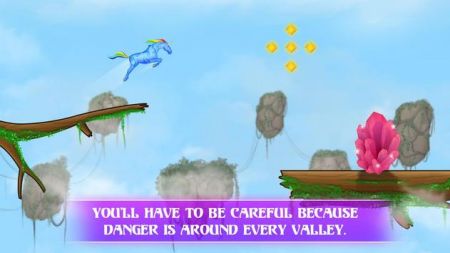2、玩家需要精准控制独角兽的移动,通过跳跃、滑行等动作躲避障碍物,同时收集各种金币和特殊道具;