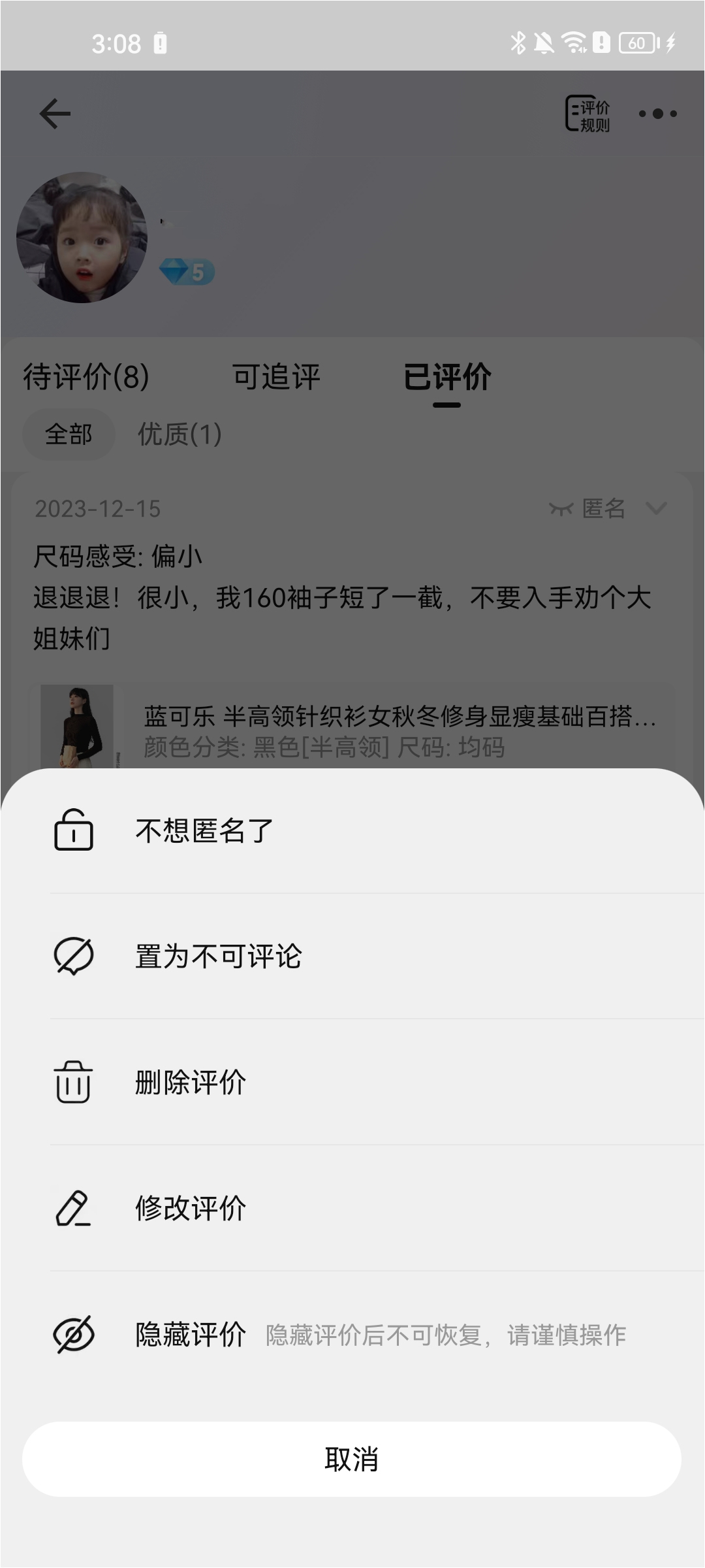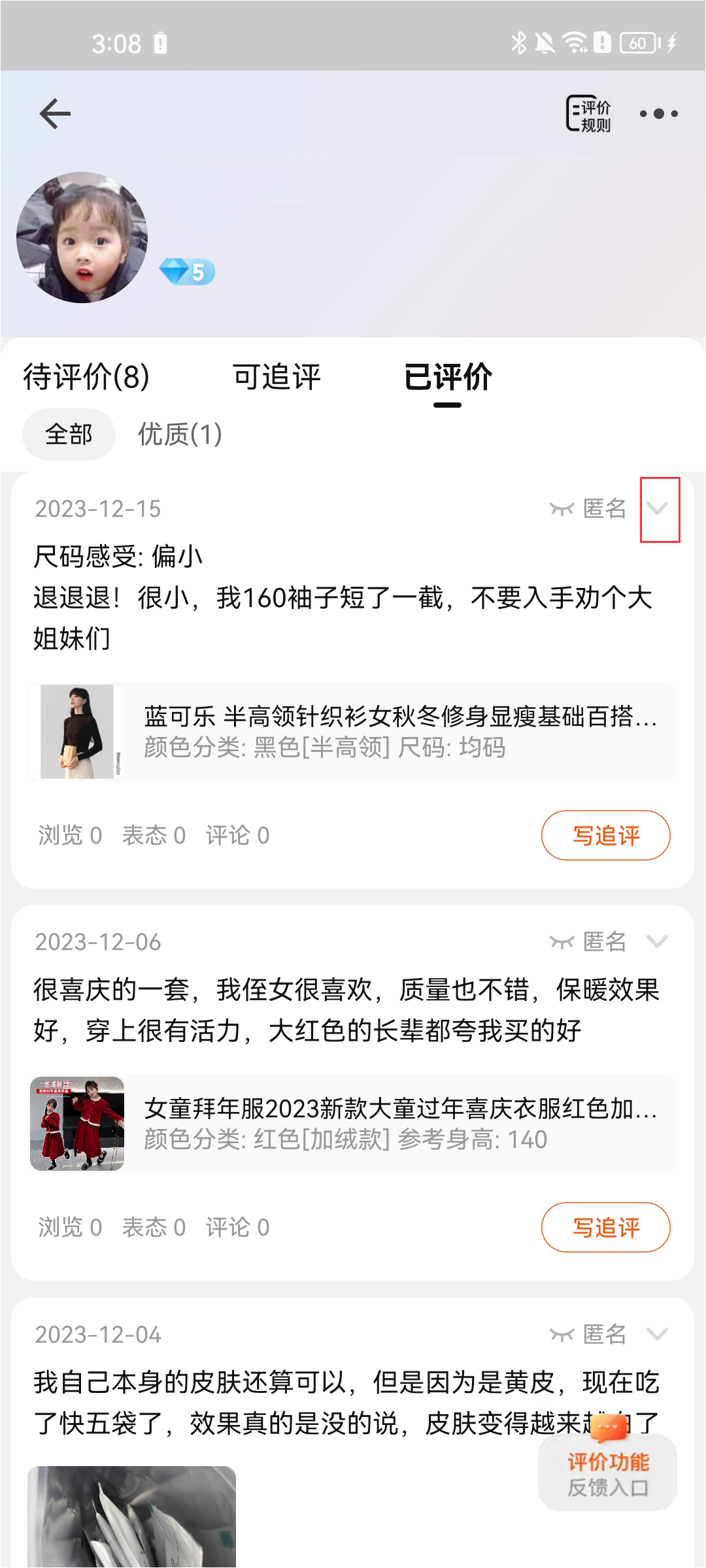 4、最后,如下,在弹窗里点击【确定】即可删除自己的评价内容