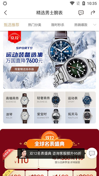 3、小编选择的是男表,包含高端商务、轻奢商务、运动表等划分;