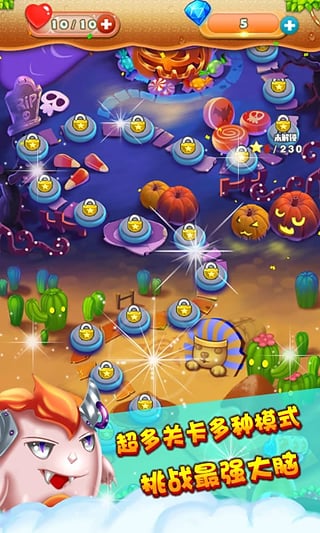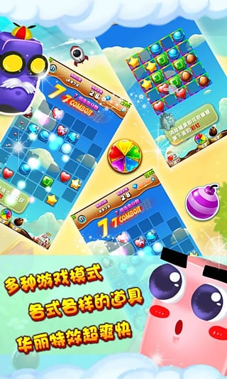 游戏采用甜美可爱的糖果主题,搭配华丽的消除特效,带来视觉上的享受;提供多种创新玩法模式,包括限时挑战、积分竞赛等,每种模式都独具特色;精心设计的道具系统,可以帮助玩家突破难关;关卡难度循序渐进,从简单入门到烧脑挑战,满足不同水平玩家的需求;丰富的成就系统和奖励机制,让游戏过程充满成就感。