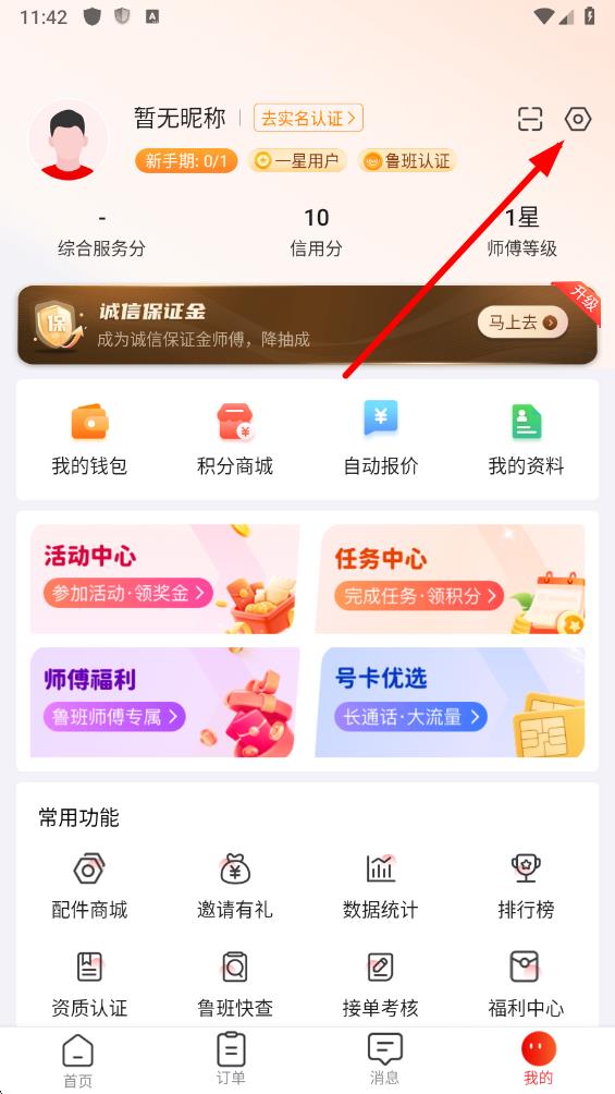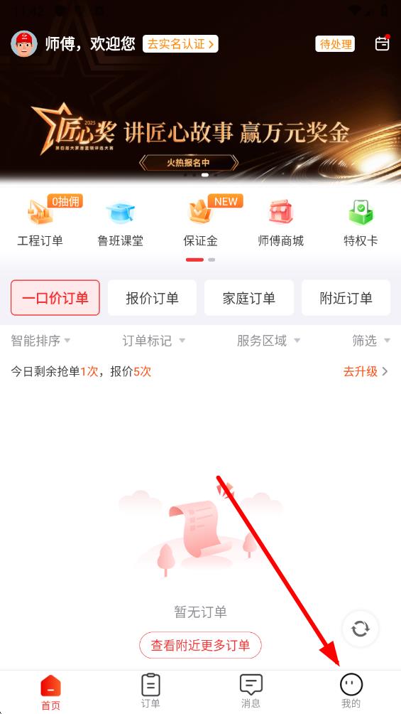 1、打开鲁班到家师傅版软件,点击底部导航栏中我的图标进入个人相关界面。