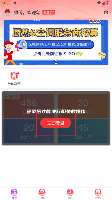 鲁班到家师傅版app是作为专业的接单工具,师傅们只需简单注册,就能快速开启接单之旅,涵盖家具、家电、门窗等各类家居安装需求,订单资源丰富,不用再愁没活干,遇到合适的订单,可直接在线报价,还能参与抢单,灵活把握赚钱机会,整个流程简单高效,从查看订单到接单沟通,都能在手机上轻松完成,让接单赚钱更便捷。