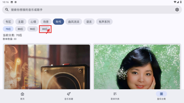 2、在分类页面,点击年代标签,进入年代内容当中。