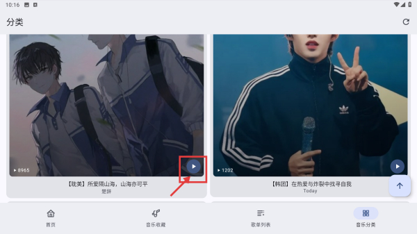 1、打开音乐应用,点击底部音乐分类选项,进入音乐分类页面。