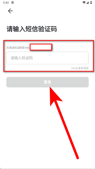 4、在短信验证码输入页面,输入验证码后点击登录,完成注册。