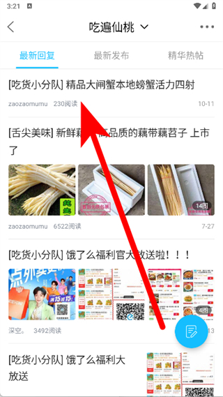 3、进入吃遍仙桃板块,点击感兴趣的帖子。