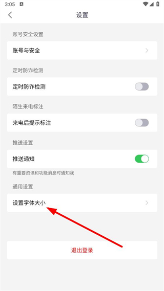 3、在设置界面里,点击设置字体大小选项。