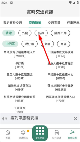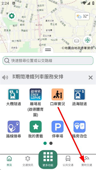 1、在首页,点击實時交通,进入實時交通資訊页面。