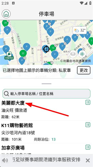 2、在更多功能页面,点击停車場,进入停車場查询页面。