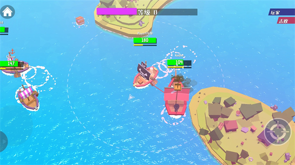 游戏拥有广阔的开放海域,充满未知的挑战和机遇。在浩瀚的海洋中航行并非易事,随时可能遭遇风暴、海怪或其他玩家的袭击。游戏采用多人竞技模式,虽然参与人数众多,但只有最强大的海盗才能获得最终胜利。海域中会随机刷新各种强力道具,包括加速装置、特殊炮弹等,率先获取这些道具的玩家将获得显著优势。此外,游戏还设置了丰富的社交系统,玩家可以组建海盗团,共同征服危险海域。
