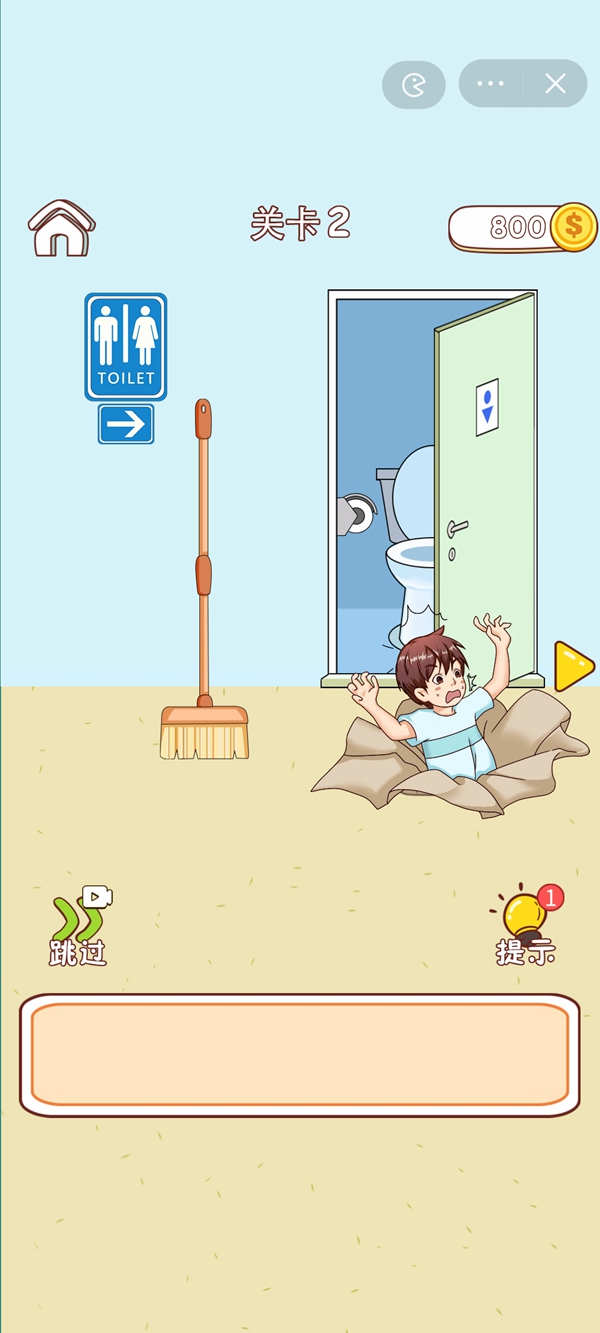 《别上错厕所》是一款考验观察力和判断力的趣味小游戏。玩家需要帮助主角在各种场景中识别正确的厕所标识,避免误入异性厕所的尴尬情况。游戏通过精心设计的图标、标语和场景细节,为玩家带来轻松愉快的解谜体验。简单直观的操作方式让玩家能够快速上手,而幽默风趣的美术风格和魔性配音则增添了更多欢乐元素。无论是排队时的短暂消遣,还是与朋友分享搞笑瞬间,这款游戏都能带来独特的娱乐体验。